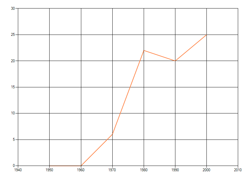 Het voor waarnemingsinspanning gecorrigeerde, of door een expert geschatte aantal atlasblokken (5x5 km) waarin de soort voorkomt per periode van tien jaar. Soms fluctueert het aantal sterk. Hoe vloeiender de lijn, des te betrouwbaarder de grafiek. Bron: Rode Lijst Mossen 2010. © BLWG 2011