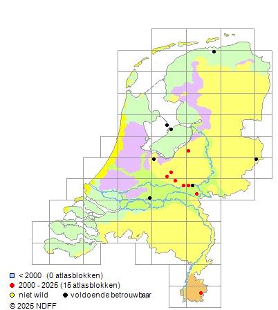 Het opgegeven jaartal is het eerste jaar van de periode. Bron: gevalideerde waarnemingen uit de NDFF.