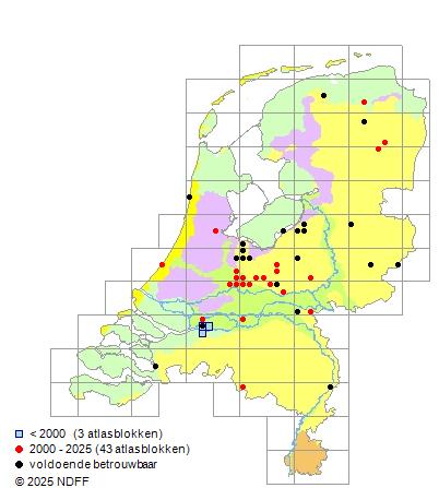 Het opgegeven jaartal is het eerste jaar van de periode. Bron: gevalideerde waarnemingen uit de NDFF.
