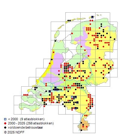 Het opgegeven jaartal is het eerste jaar van de periode. Bron: gevalideerde waarnemingen uit de NDFF.
