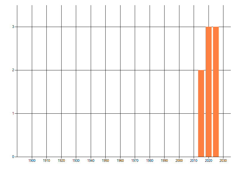 Het aantal atlasblokken (5x5 km) waarin de soort is gemeld binnen een periode van vijf jaar (vanaf 1980) of twintig jaar. Niet gecorrigeerd voor waarnemersinspanning en het aantal doorgegeven waarnemingen kan sterk variëren per periode, dus een trend in verspreiding kan hier niet direct uit worden afgelezen. Het opgegeven jaartal is het eerste jaar van de periode. Bron: gevalideerde waarnemingen uit de NDFF.