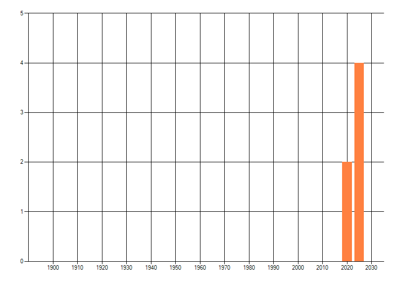 Het aantal atlasblokken (5x5 km) waarin de soort is gemeld binnen een periode van vijf jaar (vanaf 1980) of twintig jaar. Niet gecorrigeerd voor waarnemersinspanning en het aantal doorgegeven waarnemingen kan sterk variëren per periode, dus een trend in verspreiding kan hier niet direct uit worden afgelezen. Het opgegeven jaartal is het eerste jaar van de periode. Bron: gevalideerde waarnemingen uit de NDFF.