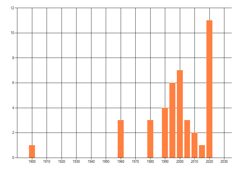 Het aantal atlasblokken (5x5 km) waarin de soort is gemeld binnen een periode van vijf jaar (vanaf 1980) of twintig jaar. Niet gecorrigeerd voor waarnemersinspanning en het aantal doorgegeven waarnemingen kan sterk variëren per periode, dus een trend in verspreiding kan hier niet direct uit worden afgelezen. Het opgegeven jaartal is het eerste jaar van de periode. Bron: gevalideerde waarnemingen uit de NDFF.