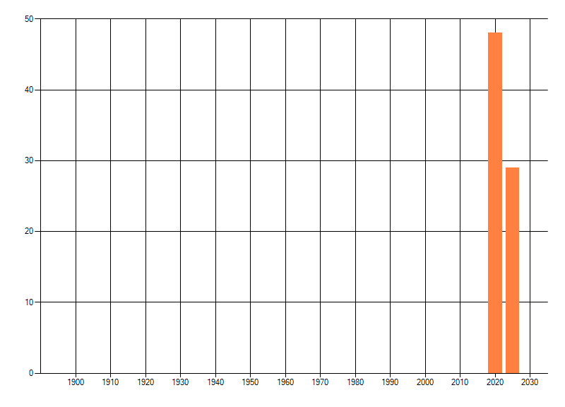 Het aantal atlasblokken (5x5 km) waarin de soort is gemeld binnen een periode van vijf jaar (vanaf 1980) of twintig jaar. Niet gecorrigeerd voor waarnemersinspanning en het aantal doorgegeven waarnemingen kan sterk variëren per periode, dus een trend in verspreiding kan hier niet direct uit worden afgelezen. Het opgegeven jaartal is het eerste jaar van de periode. Bron: gevalideerde waarnemingen uit de NDFF.