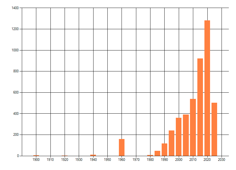 Het aantal atlasblokken (5x5 km) waarin de soort is gemeld binnen een periode van vijf jaar (vanaf 1980) of twintig jaar. Niet gecorrigeerd voor waarnemersinspanning en het aantal doorgegeven waarnemingen kan sterk variëren per periode, dus een trend in verspreiding kan hier niet direct uit worden afgelezen. Het opgegeven jaartal is het eerste jaar van de periode. Bron: gevalideerde waarnemingen uit de NDFF.