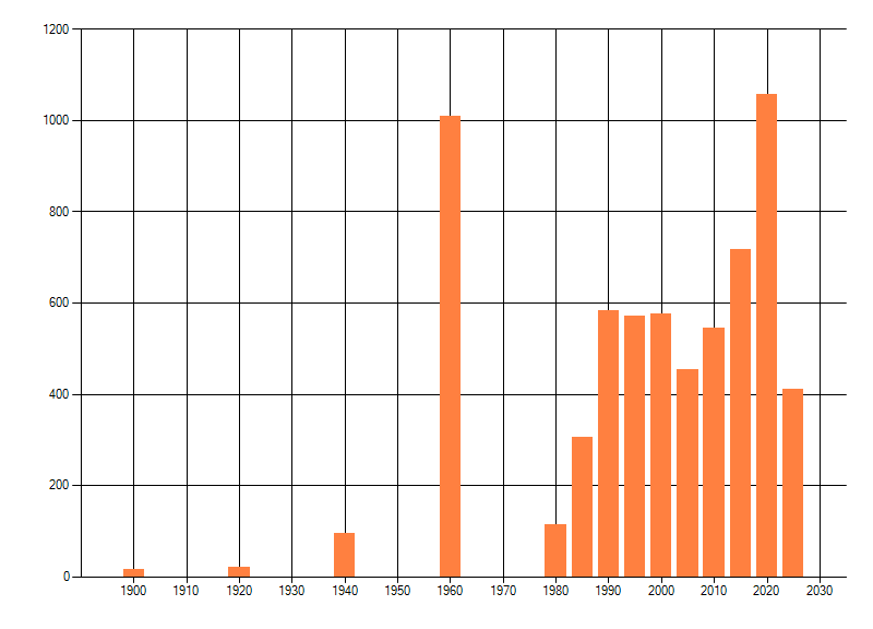 Het aantal atlasblokken (5x5 km) waarin de soort is gemeld binnen een periode van vijf jaar (vanaf 1980) of twintig jaar. Niet gecorrigeerd voor waarnemersinspanning en het aantal doorgegeven waarnemingen kan sterk variëren per periode, dus een trend in verspreiding kan hier niet direct uit worden afgelezen. Het opgegeven jaartal is het eerste jaar van de periode. Bron: gevalideerde waarnemingen uit de NDFF.