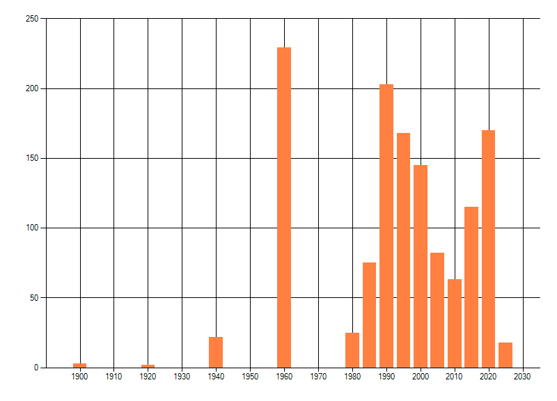 Het aantal atlasblokken (5x5 km) waarin de soort is gemeld binnen een periode van vijf jaar (vanaf 1980) of twintig jaar. Niet gecorrigeerd voor waarnemersinspanning en het aantal doorgegeven waarnemingen kan sterk variëren per periode, dus een trend in verspreiding kan hier niet direct uit worden afgelezen. Het opgegeven jaartal is het eerste jaar van de periode. Bron: gevalideerde waarnemingen uit de NDFF.