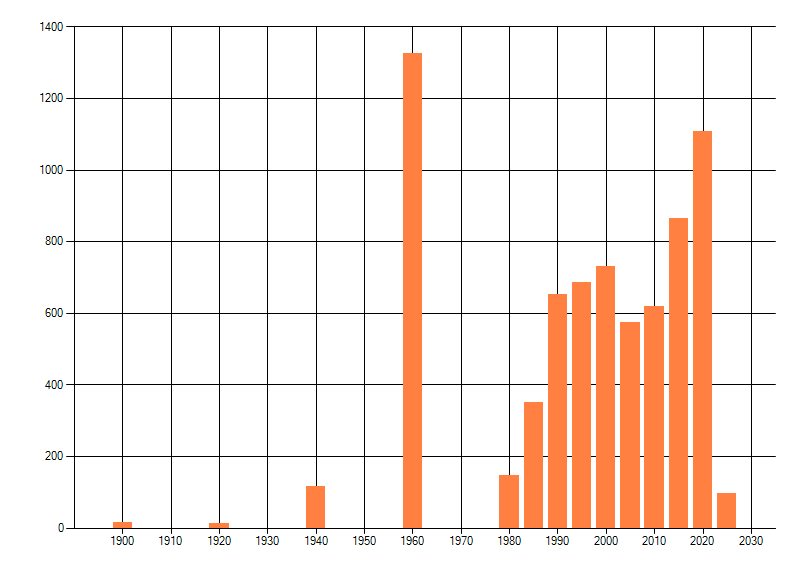 Het aantal atlasblokken (5x5 km) waarin de soort is gemeld binnen een periode van vijf jaar (vanaf 1980) of twintig jaar. Niet gecorrigeerd voor waarnemersinspanning en het aantal doorgegeven waarnemingen kan sterk variëren per periode, dus een trend in verspreiding kan hier niet direct uit worden afgelezen. Het opgegeven jaartal is het eerste jaar van de periode. Bron: gevalideerde waarnemingen uit de NDFF.