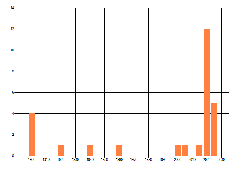 Het aantal atlasblokken (5x5 km) waarin de soort is gemeld binnen een periode van vijf jaar (vanaf 1980) of twintig jaar. Niet gecorrigeerd voor waarnemersinspanning en het aantal doorgegeven waarnemingen kan sterk variëren per periode, dus een trend in verspreiding kan hier niet direct uit worden afgelezen. Het opgegeven jaartal is het eerste jaar van de periode. Bron: gevalideerde waarnemingen uit de NDFF.