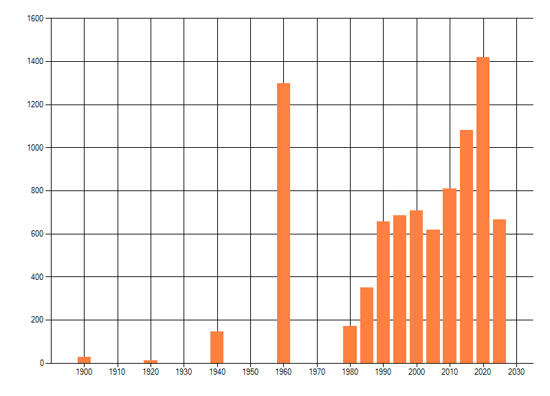 Het aantal atlasblokken (5x5 km) waarin de soort is gemeld binnen een periode van vijf jaar (vanaf 1980) of twintig jaar. Niet gecorrigeerd voor waarnemersinspanning en het aantal doorgegeven waarnemingen kan sterk variëren per periode, dus een trend in verspreiding kan hier niet direct uit worden afgelezen. Het opgegeven jaartal is het eerste jaar van de periode. Bron: gevalideerde waarnemingen uit de NDFF.