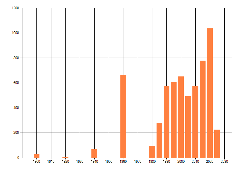 Het aantal atlasblokken (5x5 km) waarin de soort is gemeld binnen een periode van vijf jaar (vanaf 1980) of twintig jaar. Niet gecorrigeerd voor waarnemersinspanning en het aantal doorgegeven waarnemingen kan sterk variëren per periode, dus een trend in verspreiding kan hier niet direct uit worden afgelezen. Het opgegeven jaartal is het eerste jaar van de periode. Bron: gevalideerde waarnemingen uit de NDFF.