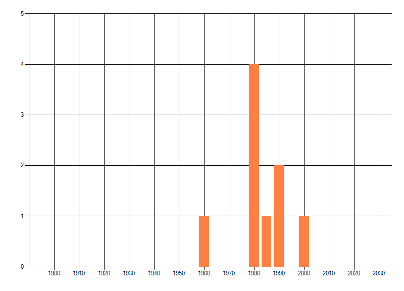 Het aantal atlasblokken (5x5 km) waarin de soort is gemeld binnen een periode van vijf jaar (vanaf 1980) of twintig jaar. Niet gecorrigeerd voor waarnemersinspanning en het aantal doorgegeven waarnemingen kan sterk variëren per periode, dus een trend in verspreiding kan hier niet direct uit worden afgelezen. Het opgegeven jaartal is het eerste jaar van de periode. Bron: gevalideerde waarnemingen uit de NDFF.