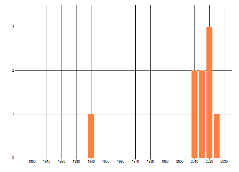 Het aantal atlasblokken (5x5 km) waarin de soort is gemeld binnen een periode van vijf jaar (vanaf 1980) of twintig jaar. Niet gecorrigeerd voor waarnemersinspanning en het aantal doorgegeven waarnemingen kan sterk variëren per periode, dus een trend in verspreiding kan hier niet direct uit worden afgelezen. Het opgegeven jaartal is het eerste jaar van de periode. Bron: gevalideerde waarnemingen uit de NDFF.