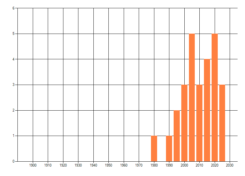 Het aantal atlasblokken (5x5 km) waarin de soort is gemeld binnen een periode van vijf jaar (vanaf 1980) of twintig jaar. Niet gecorrigeerd voor waarnemersinspanning en het aantal doorgegeven waarnemingen kan sterk variëren per periode, dus een trend in verspreiding kan hier niet direct uit worden afgelezen. Het opgegeven jaartal is het eerste jaar van de periode. Bron: gevalideerde waarnemingen uit de NDFF.