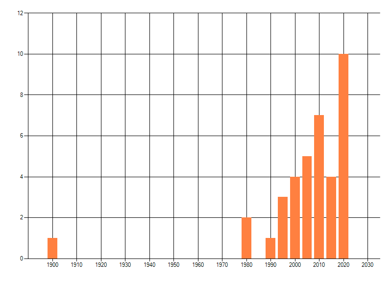 Het aantal atlasblokken (5x5 km) waarin de soort is gemeld binnen een periode van vijf jaar (vanaf 1980) of twintig jaar. Niet gecorrigeerd voor waarnemersinspanning en het aantal doorgegeven waarnemingen kan sterk variëren per periode, dus een trend in verspreiding kan hier niet direct uit worden afgelezen. Het opgegeven jaartal is het eerste jaar van de periode. Bron: gevalideerde waarnemingen uit de NDFF.