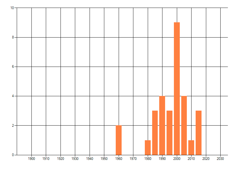 Het aantal atlasblokken (5x5 km) waarin de soort is gemeld binnen een periode van vijf jaar (vanaf 1980) of twintig jaar. Niet gecorrigeerd voor waarnemersinspanning en het aantal doorgegeven waarnemingen kan sterk variëren per periode, dus een trend in verspreiding kan hier niet direct uit worden afgelezen. Het opgegeven jaartal is het eerste jaar van de periode. Bron: gevalideerde waarnemingen uit de NDFF.