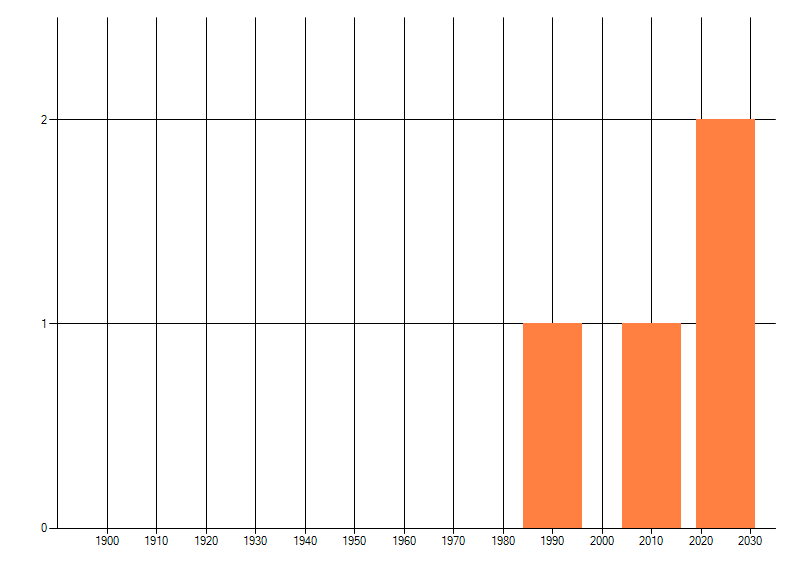 Het aantal atlasblokken (5x5 km) waarin de soort is gemeld binnen een periode van vijf jaar (vanaf 1980) of twintig jaar. Niet gecorrigeerd voor waarnemersinspanning en het aantal doorgegeven waarnemingen kan sterk variëren per periode, dus een trend in verspreiding kan hier niet direct uit worden afgelezen. Het opgegeven jaartal is het eerste jaar van de periode. Bron: gevalideerde waarnemingen uit de NDFF.