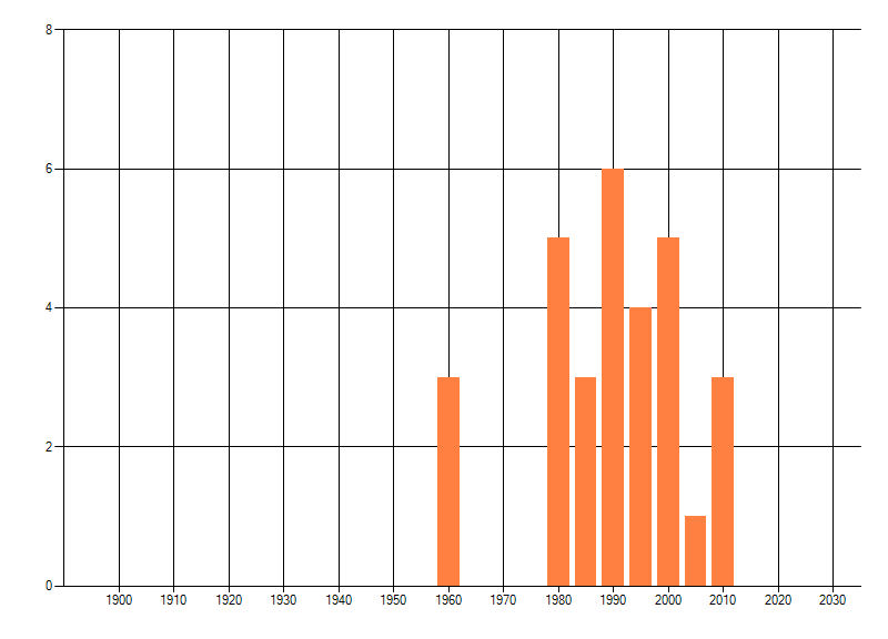 Het aantal atlasblokken (5x5 km) waarin de soort is gemeld binnen een periode van vijf jaar (vanaf 1980) of twintig jaar. Niet gecorrigeerd voor waarnemersinspanning en het aantal doorgegeven waarnemingen kan sterk variëren per periode, dus een trend in verspreiding kan hier niet direct uit worden afgelezen. Het opgegeven jaartal is het eerste jaar van de periode. Bron: gevalideerde waarnemingen uit de NDFF.