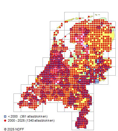 Bron: FLORON - Gemodelleerd op basis van waarnemingen uit de NDFF voor de periode 2000-2021.