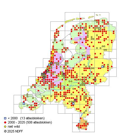 Bron: FLORON - Gemodelleerd op basis van waarnemingen uit de NDFF voor de periode 2000-2021.