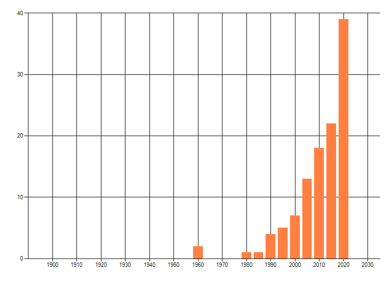 dus een trend in verspreiding kan hier niet direct uit worden afgelezen. Het opgegeven jaartal is het eerste jaar van de