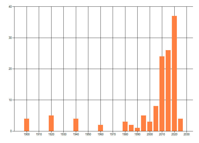 dus een trend in verspreiding kan hier niet direct uit worden afgelezen. Het opgegeven jaartal is het eerste jaar van de