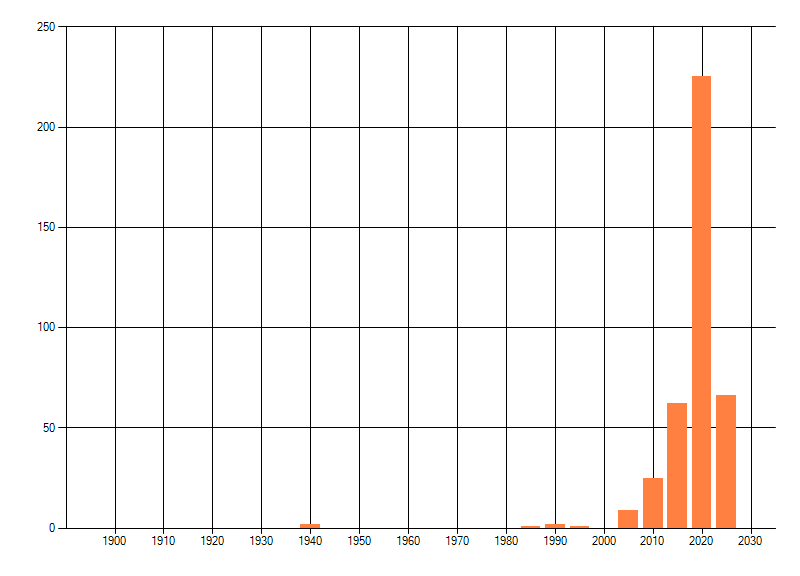 Het aantal atlasblokken (5x5 km) waarin de soort is gemeld binnen een periode van vijf jaar (vanaf 1980) of twintig jaar. Niet gecorrigeerd voor waarnemersinspanning en het aantal doorgegeven waarnemingen kan sterk variëren per periode, dus een trend in verspreiding kan hier niet direct uit worden afgelezen. Het opgegeven jaartal is het eerste jaar van de periode. Bron: gevalideerde waarnemingen uit de NDFF.
