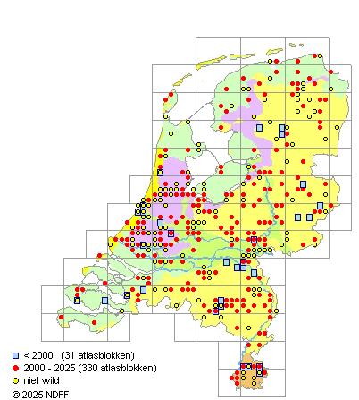 Bron: FLORON - Gemodelleerd op basis van waarnemingen uit de NDFF voor de periode 2000-2021.