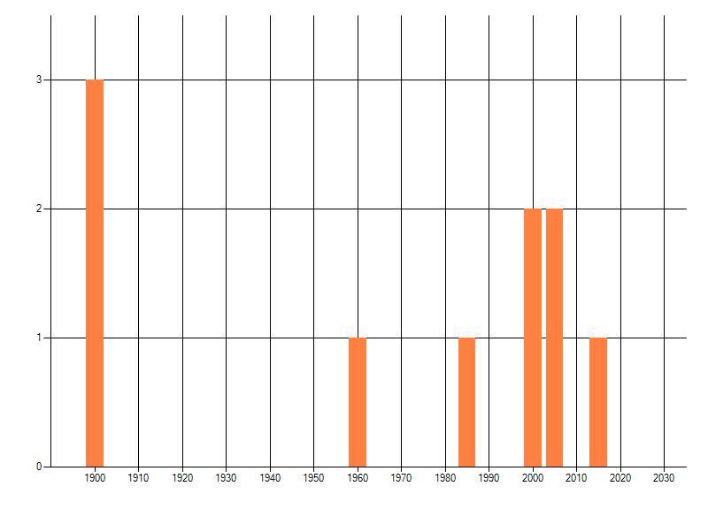Het aantal atlasblokken (5x5 km) waarin de soort is gemeld binnen een periode van vijf jaar (vanaf 1980) of twintig jaar. Niet gecorrigeerd voor waarnemersinspanning en het aantal doorgegeven waarnemingen kan sterk variëren per periode, dus een trend in verspreiding kan hier niet direct uit worden afgelezen. Het opgegeven jaartal is het eerste jaar van de periode. Bron: gevalideerde waarnemingen uit de NDFF.