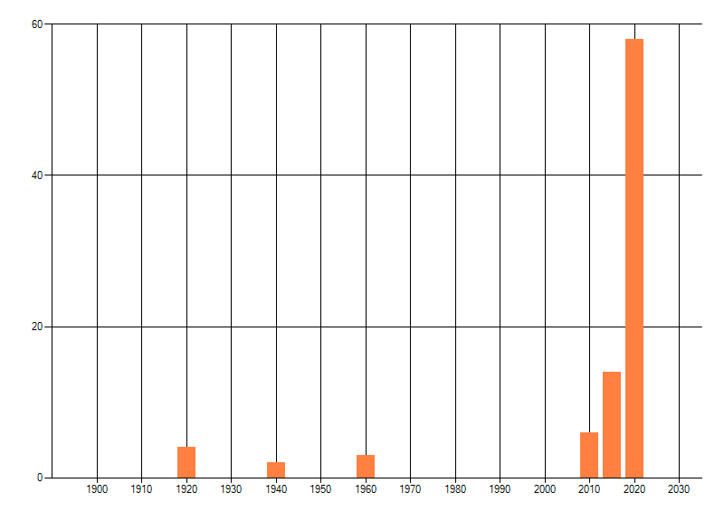 Het aantal atlasblokken (5x5 km) waarin de soort is gemeld binnen een periode van vijf jaar (vanaf 1980) of twintig jaar. Niet gecorrigeerd voor waarnemersinspanning en het aantal doorgegeven waarnemingen kan sterk variëren per periode, dus een trend in verspreiding kan hier niet direct uit worden afgelezen. Het opgegeven jaartal is het eerste jaar van de periode. Bron: gevalideerde waarnemingen uit de NDFF.