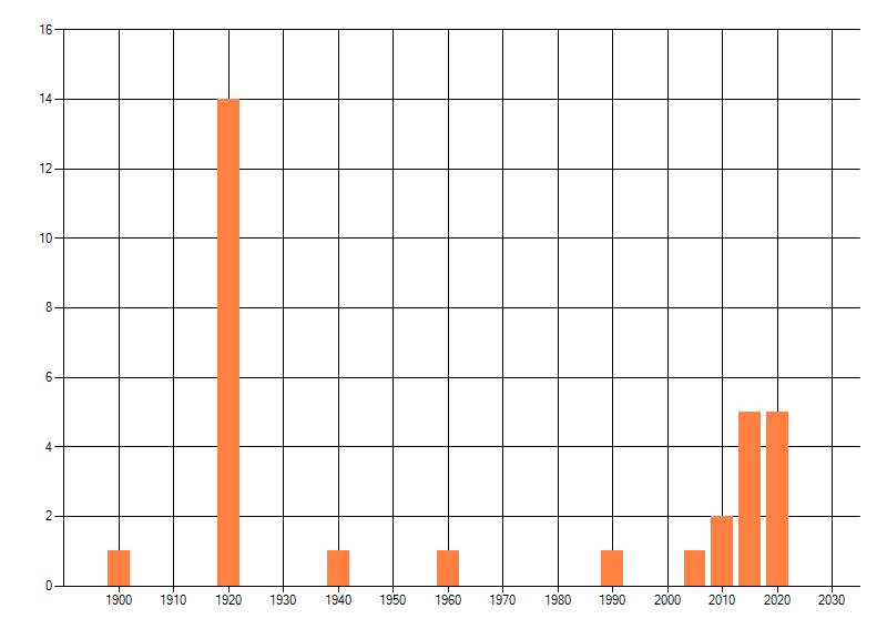 Het aantal atlasblokken (5x5 km) waarin de soort is gemeld binnen een periode van vijf jaar (vanaf 1980) of twintig jaar. Niet gecorrigeerd voor waarnemersinspanning en het aantal doorgegeven waarnemingen kan sterk variëren per periode, dus een trend in verspreiding kan hier niet direct uit worden afgelezen. Het opgegeven jaartal is het eerste jaar van de periode. Bron: gevalideerde waarnemingen uit de NDFF.