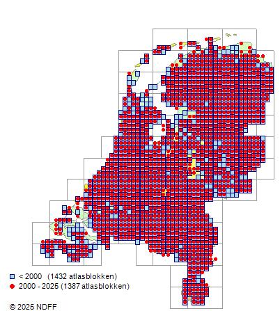 Bron: FLORON - Gemodelleerd op basis van waarnemingen uit de NDFF voor de periode 2000-2021.
