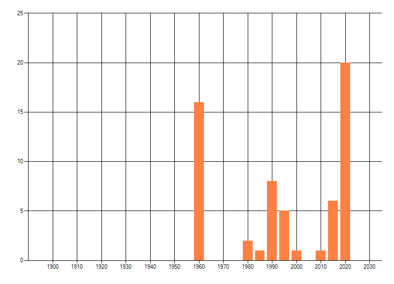 dus een trend in verspreiding kan hier niet direct uit worden afgelezen. Het opgegeven jaartal is het eerste jaar van de