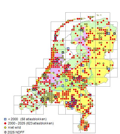 Bron: FLORON - Gemodelleerd op basis van waarnemingen uit de NDFF voor de periode 2000-2021.