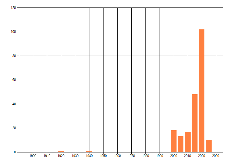 Het aantal atlasblokken (5x5 km) waarin de soort is gemeld binnen een periode van vijf jaar (vanaf 1980) of twintig jaar. Niet gecorrigeerd voor waarnemersinspanning en het aantal doorgegeven waarnemingen kan sterk variëren per periode, dus een trend in verspreiding kan hier niet direct uit worden afgelezen. Het opgegeven jaartal is het eerste jaar van de periode. Bron: gevalideerde waarnemingen uit de NDFF.