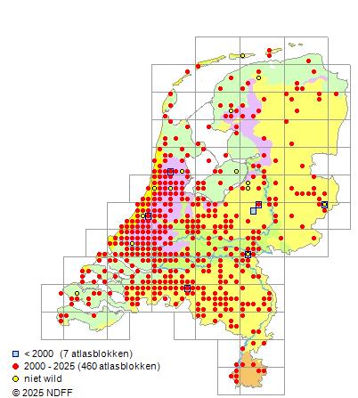 Bron: FLORON - Gemodelleerd op basis van waarnemingen uit de NDFF voor de periode 2000-2021.