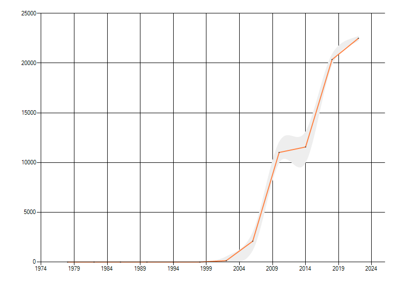 In de grafiek correspondeert ieder punt met het laatste jaar van zo'n periode.