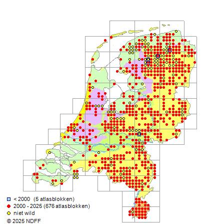 Bron: FLORON - Gemodelleerd op basis van waarnemingen uit de NDFF voor de periode 2000-2021.