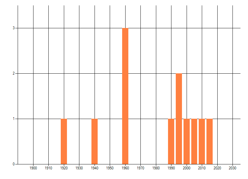 Het aantal atlasblokken (5x5 km) waarin de soort is gemeld binnen een periode van vijf jaar (vanaf 1980) of twintig jaar. Niet gecorrigeerd voor waarnemersinspanning en het aantal doorgegeven waarnemingen kan sterk variëren per periode, dus een trend in verspreiding kan hier niet direct uit worden afgelezen. Het opgegeven jaartal is het eerste jaar van de periode. Bron: gevalideerde waarnemingen uit de NDFF.