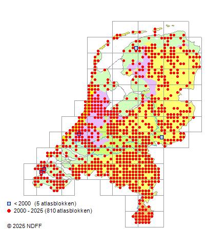 Bron: FLORON - Gemodelleerd op basis van waarnemingen uit de NDFF voor de periode 2000-2021.