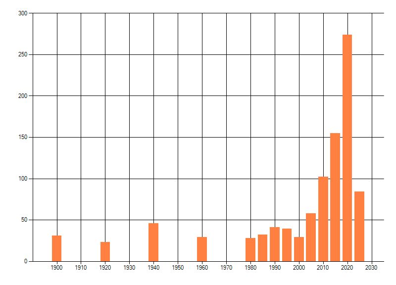 Het aantal atlasblokken (5x5 km) waarin de soort is gemeld binnen een periode van vijf jaar (vanaf 1980) of twintig jaar. Niet gecorrigeerd voor waarnemersinspanning en het aantal doorgegeven waarnemingen kan sterk variëren per periode, dus een trend in verspreiding kan hier niet direct uit worden afgelezen. Het opgegeven jaartal is het eerste jaar van de periode. Bron: gevalideerde waarnemingen uit de NDFF.