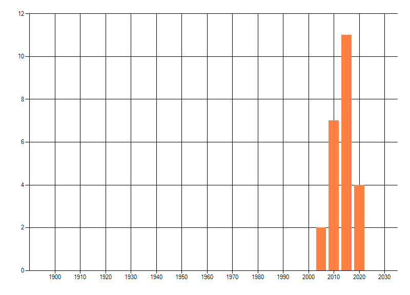Het aantal atlasblokken (5x5 km) waarin de soort is gemeld binnen een periode van vijf jaar (vanaf 1980) of twintig jaar. Niet gecorrigeerd voor waarnemersinspanning en het aantal doorgegeven waarnemingen kan sterk variëren per periode, dus een trend in verspreiding kan hier niet direct uit worden afgelezen. Het opgegeven jaartal is het eerste jaar van de periode. Bron: gevalideerde waarnemingen uit de NDFF.
