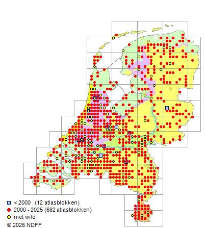 Bron: FLORON - Gemodelleerd op basis van waarnemingen uit de NDFF voor de periode 2000-2021.