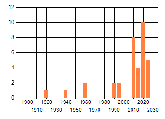 dus een trend in verspreiding kan hier niet direct uit worden afgelezen. Het opgegeven jaartal is het eerste jaar van de