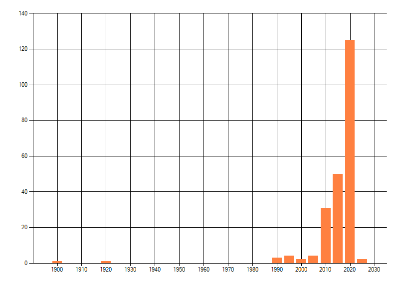dus een trend in verspreiding kan hier niet direct uit worden afgelezen. Het opgegeven jaartal is het eerste jaar van de