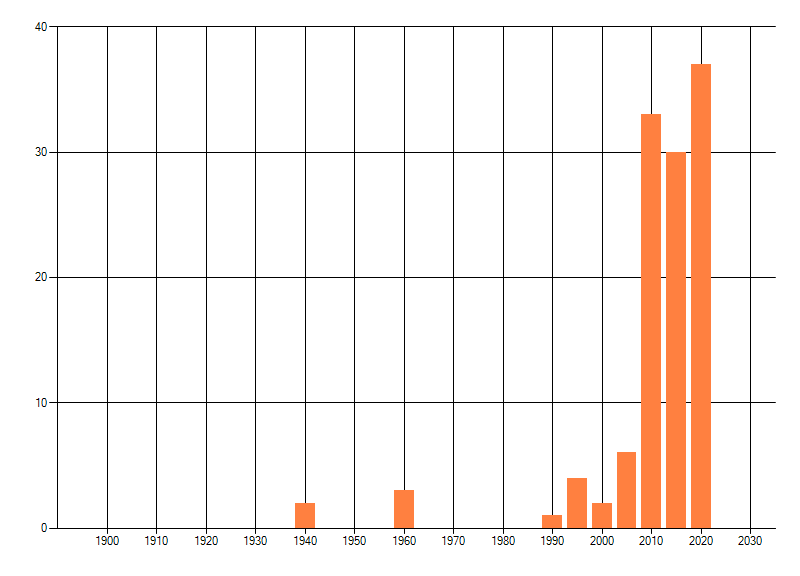 dus een trend in verspreiding kan hier niet direct uit worden afgelezen. Het opgegeven jaartal is het eerste jaar van de