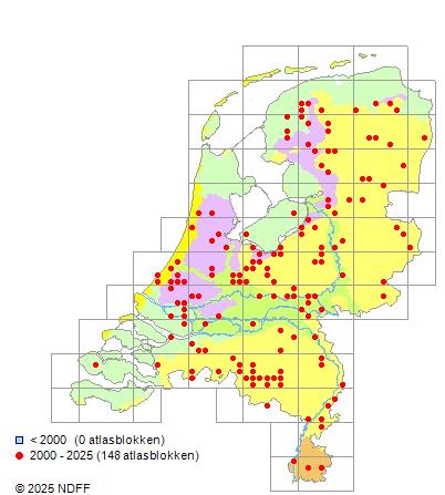 Bron: FLORON - Gemodelleerd op basis van waarnemingen uit de NDFF voor de periode 2000-2021.