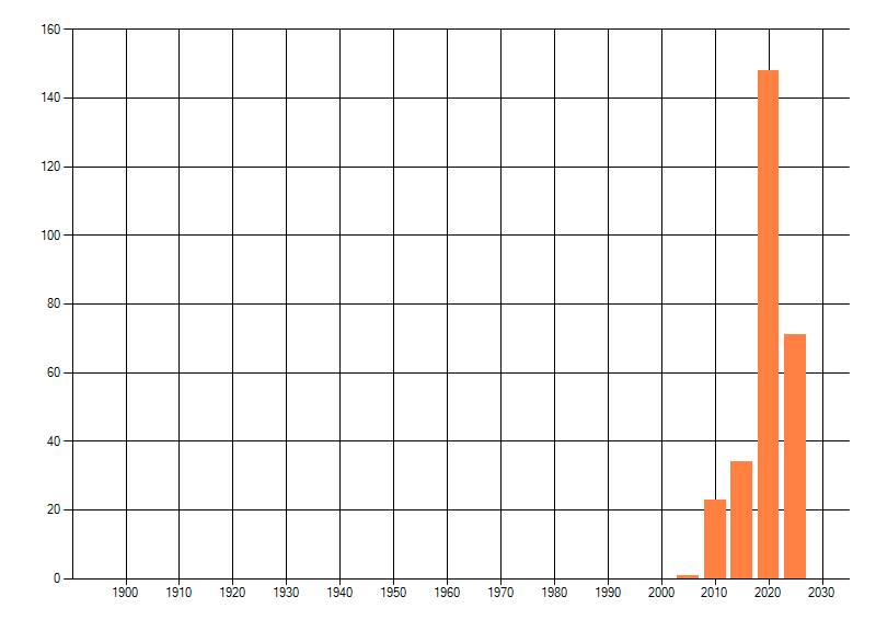 Het aantal atlasblokken (5x5 km) waarin de soort is gemeld binnen een periode van vijf jaar (vanaf 1980) of twintig jaar. Niet gecorrigeerd voor waarnemersinspanning en het aantal doorgegeven waarnemingen kan sterk variëren per periode, dus een trend in verspreiding kan hier niet direct uit worden afgelezen. Het opgegeven jaartal is het eerste jaar van de periode. Bron: gevalideerde waarnemingen uit de NDFF.