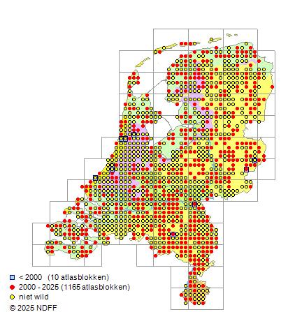 Bron: FLORON - Gemodelleerd op basis van waarnemingen uit de NDFF voor de periode 2000-2021.