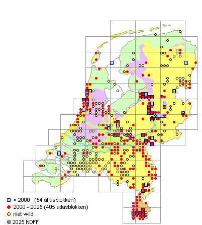 CC BY-NC-SA 3.0 NLVerspreidingNederlandVrij zeldzaam in Zuid-Limburg en zeldzaam in het rivierengebied, het zuidoosten en in de Hollandse duinen. Elders zeer zeldzaam.